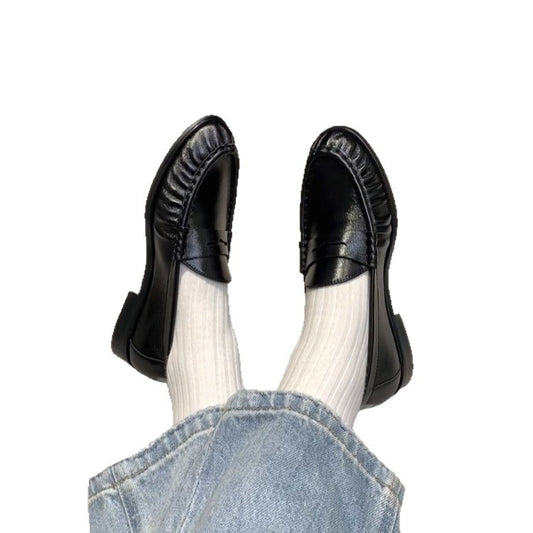 New Retro Round-Toe Pleated Suede Chunky-Heel Loafers for Women