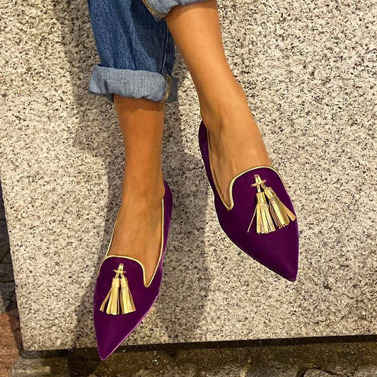New Low-heeled Pointed-toe Shallow-mouth Tassel Casual Shoes