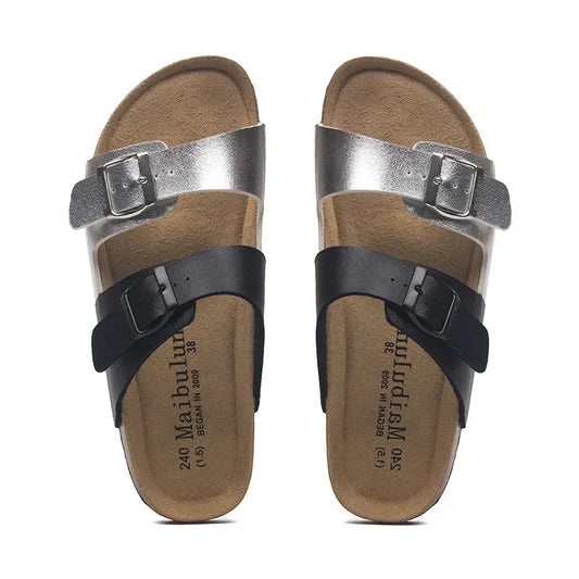Women Leather Clogs buckle sandals Slippers Soft Cork Two Buckle Women SlidesRegular price 36.000KWDRegular priceUnit price / per-