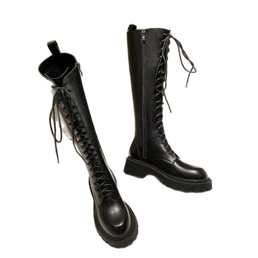 Women's Black Below The Knee Thickened Laced BootsRegular price 21.580KWDRegular priceUnit price / per-