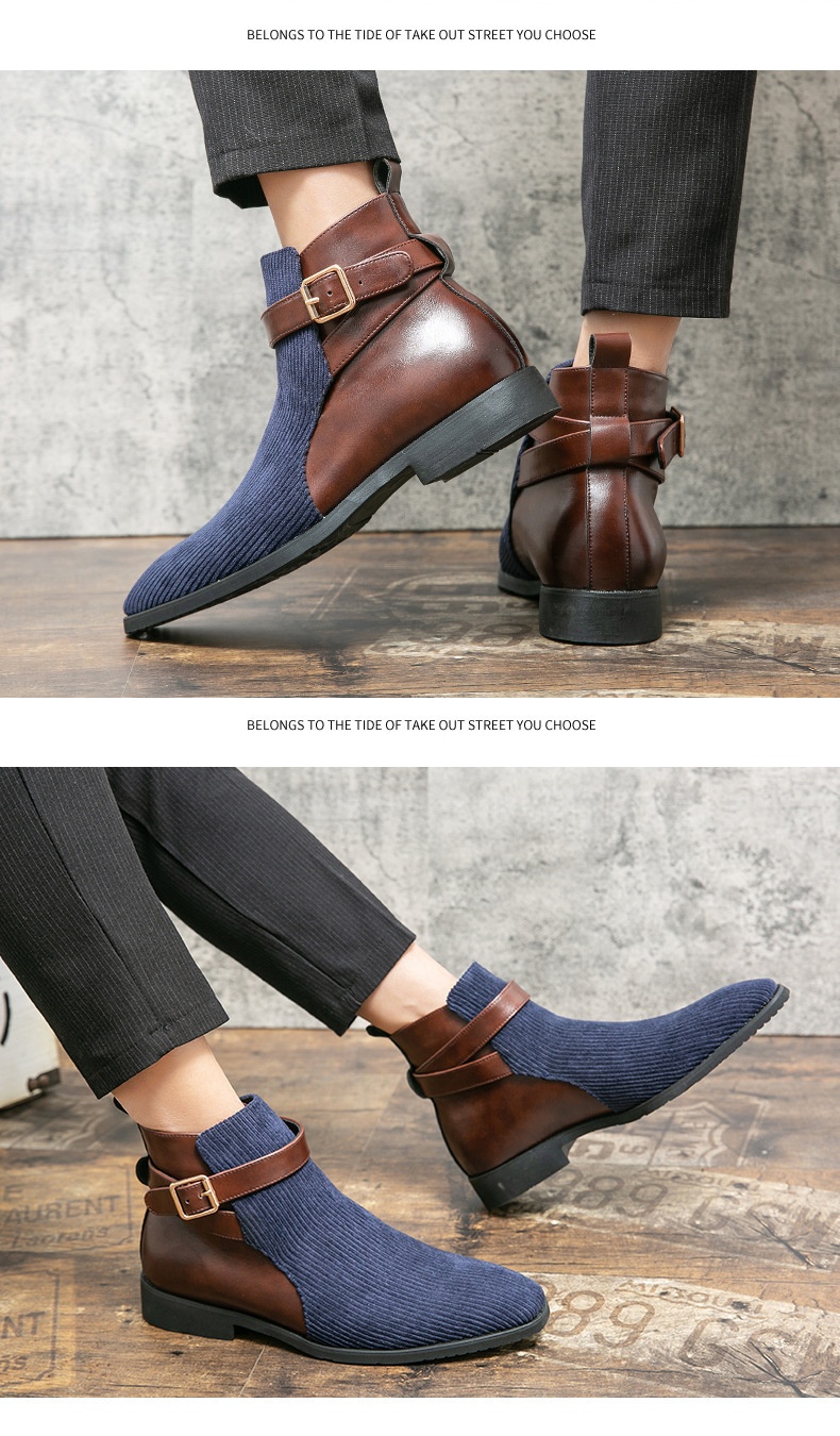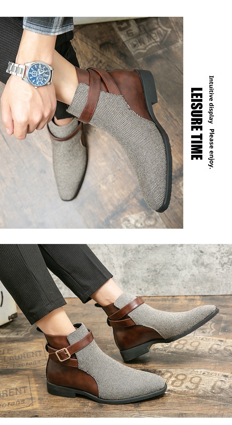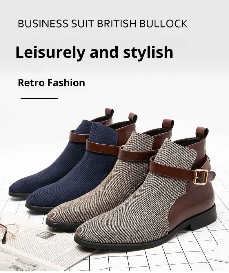 Men's High Top Working Wear Retro Platform British Style Color Block Biker Short Boots