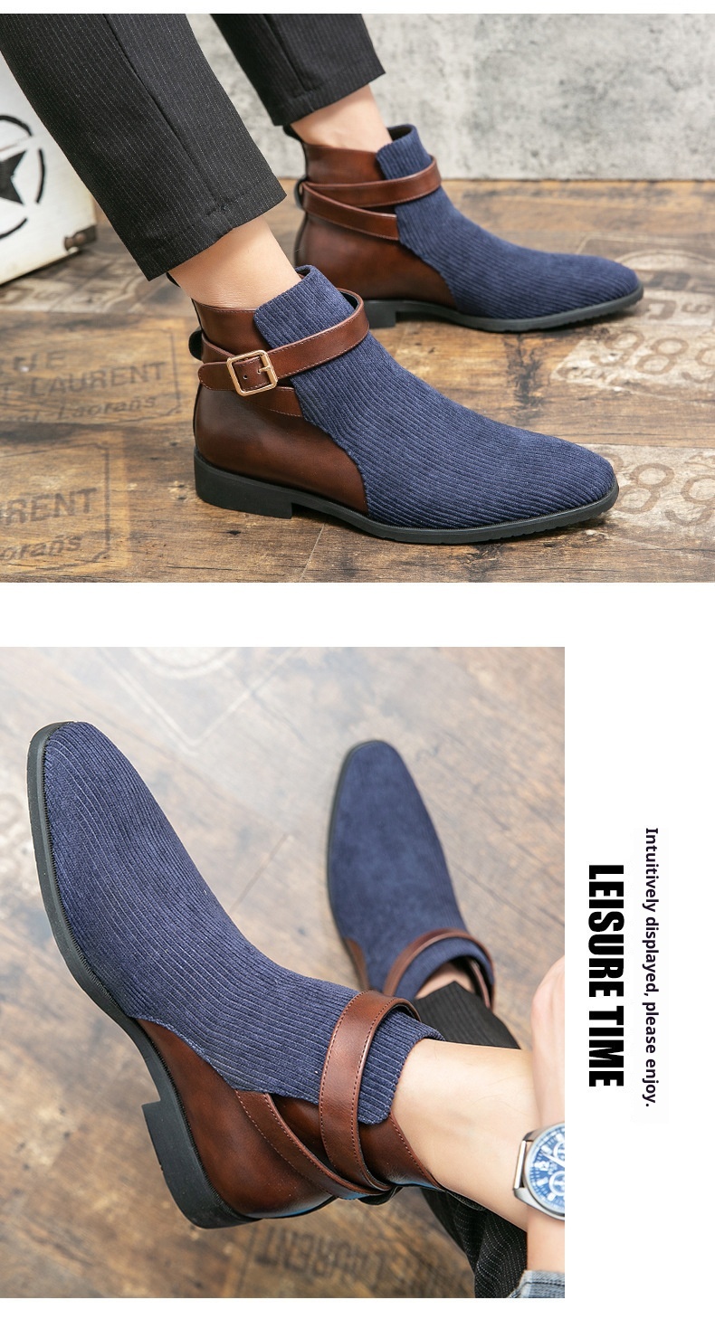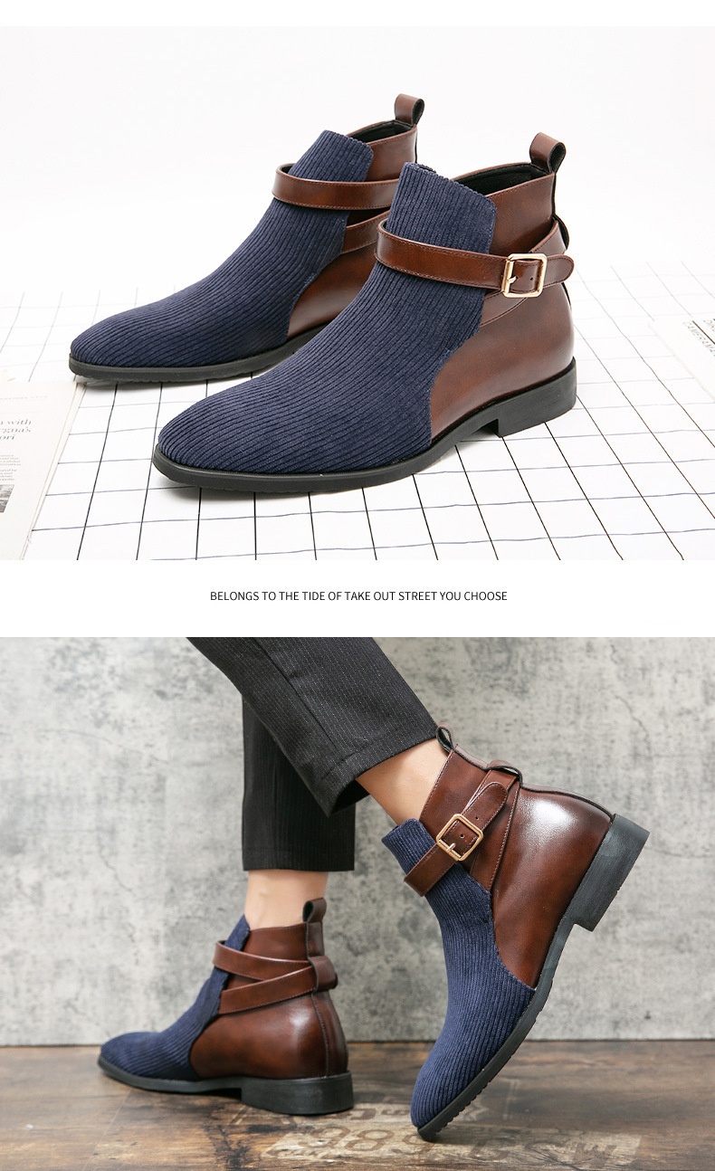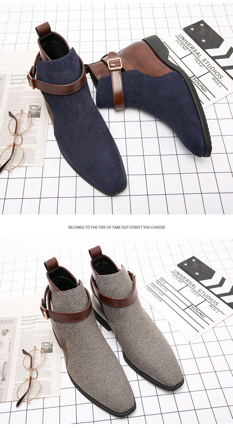 Men's High Top Working Wear Retro Platform British Style Color Block Biker Short Boots