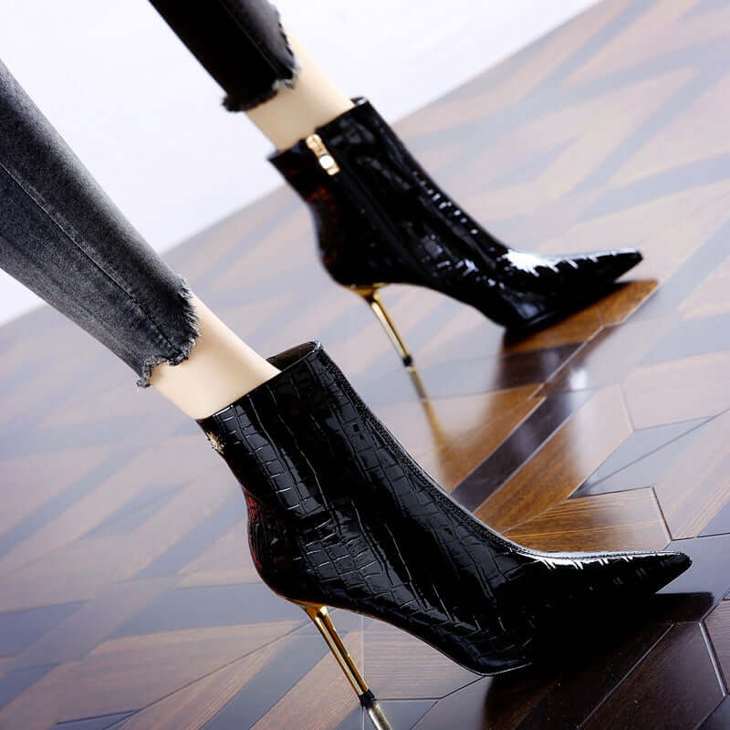 Pointed High Heels Patent Leather Stilettos Elegant High-Top Women’s Shoes