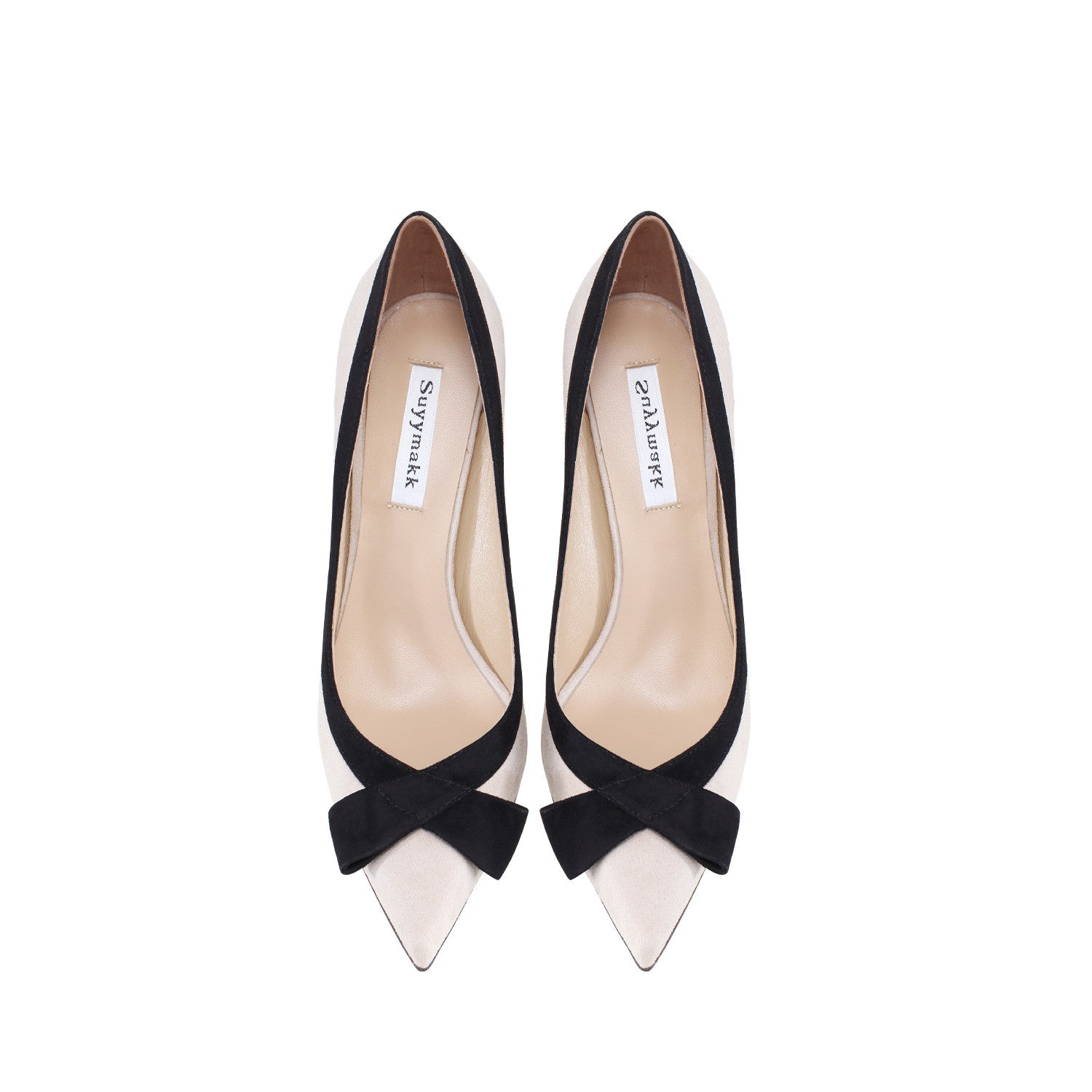 Women's Genuine Leather Apricot Bow Suede High Heels