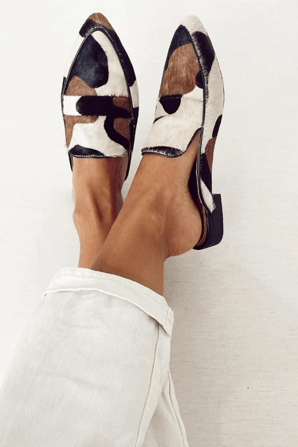 Women's Retro Pointed-toe Low Heel Cow or Horse Hair Shoes